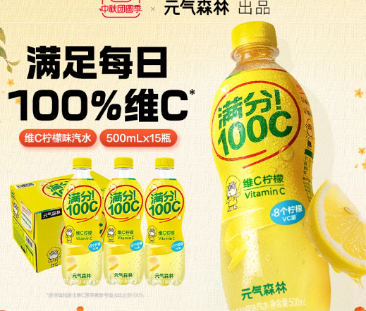 2. 元氣森林推出「滿分!100C維C檸檬味汽水」新品