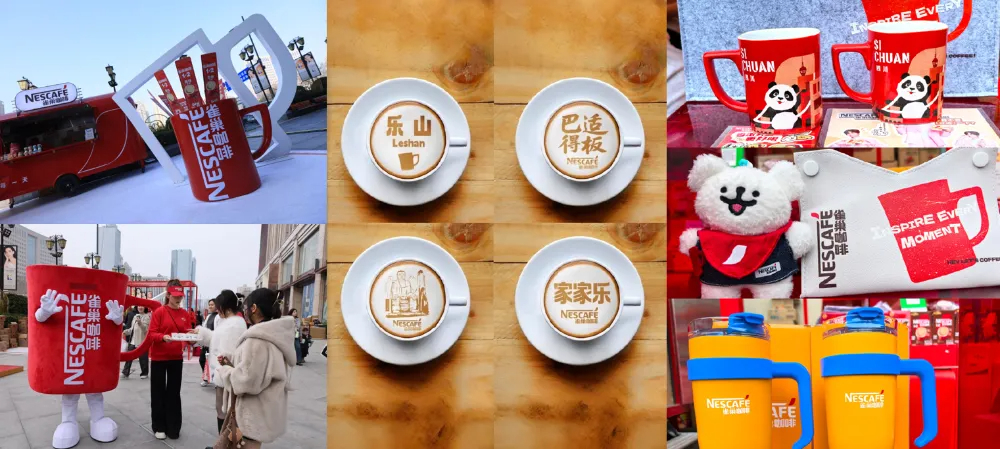 比如在四川,雀巢咖啡推出了帶有熊貓的四川定制版雀巢紅杯,還把“樂山”、“巴適得板”等元素以咖啡拉花的形式呈現。在休閑的午后來一杯咖啡,就像在茶館擺龍門陣,營造出濃濃的“巴適”氛圍。