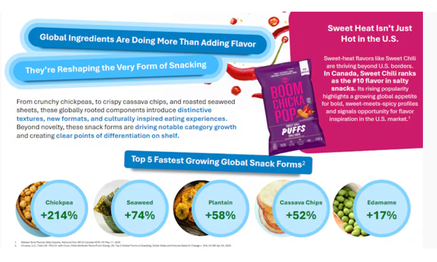 Conagra報告顯示,美國具有全球靈感的零食零售額達到 57 億美元,僅三年內銷量就增長了 22%。千禧一代和 Z 世代是這一趨勢的推動力量,他們將韓式辣醬、芒果哈瓦那辣椒和甜辣椒等口味納入日常零食選擇。