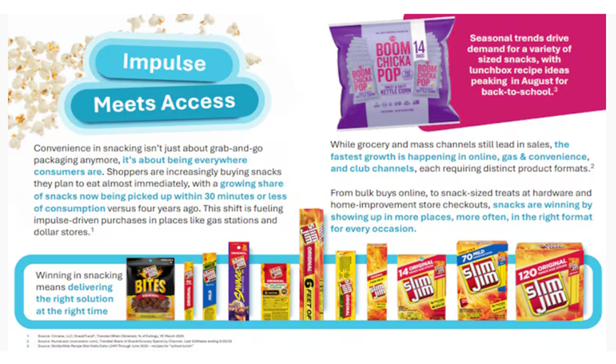 雖然雜貨店和大型超市仍在銷售額中占主導地位,但增長最快的是在線渠道、加油站及便利店以及會員制倉儲店渠道,每個渠道都需要獨特的產品形式。從在線的大包裝購買,到五金店和家居建材店收銀臺的小份零食,零食通過在更多地方、更頻繁地以適合各種場合的形式出現而取得成功。