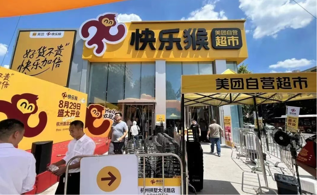 美團快樂猴首店——杭州大關路店開業已過十天時間,浙江,尤其是杭州本地的商超零售業的相關人士,比如超市、便利店等相關人士,差不多都已經于這10天時間現場看過快樂猴首店。