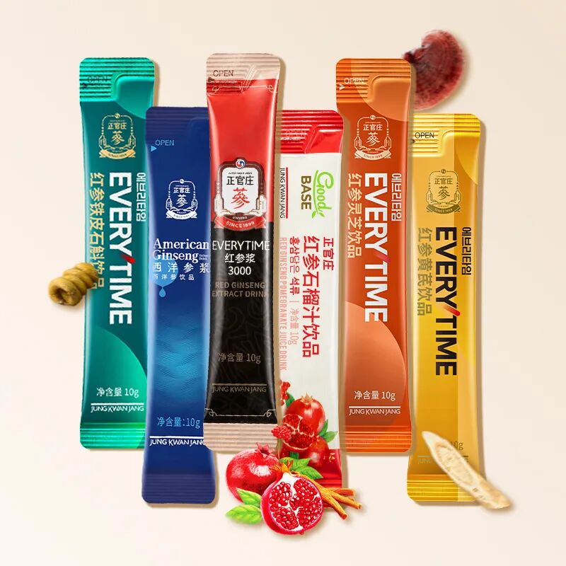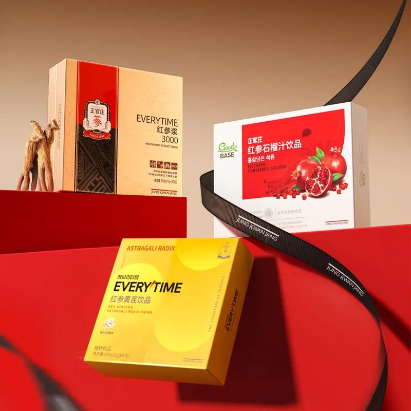 正官莊將“高麗參”作為其核心產品,以高麗參為原料進行加工和深加工,塑造高端專業的品牌形象,與普通保健品區分開來。品牌孵化子品牌EVERYTIME,以紅參為基礎,拓展產品線,推出含片、飲品、濃縮液等多種劑型,借助包裝創新滿足便攜即食的場景。此外,品牌還開發了更多“紅參+”的細分滋補產品,來滿足中國消費者激增的輕滋補需求。
