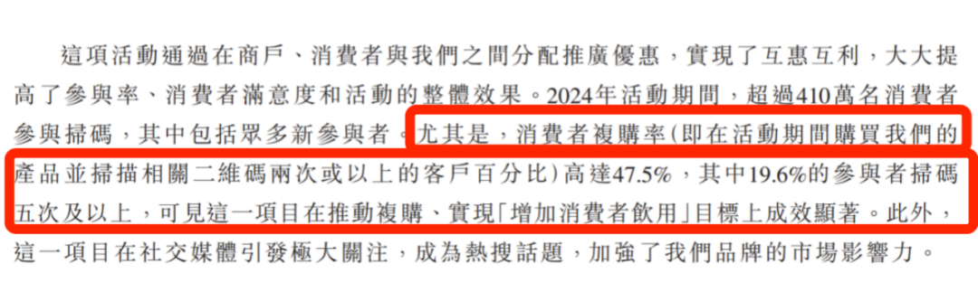 2024年活動期間,有超過410萬名消費者參與掃碼,其中包括大量新用戶;消費者復購率達到47.5%,其中19.6%的人掃碼五次及以上。這套體系不僅讓活動更精準、更高效,也真正實現了“從掃碼到復購”的增長閉環。