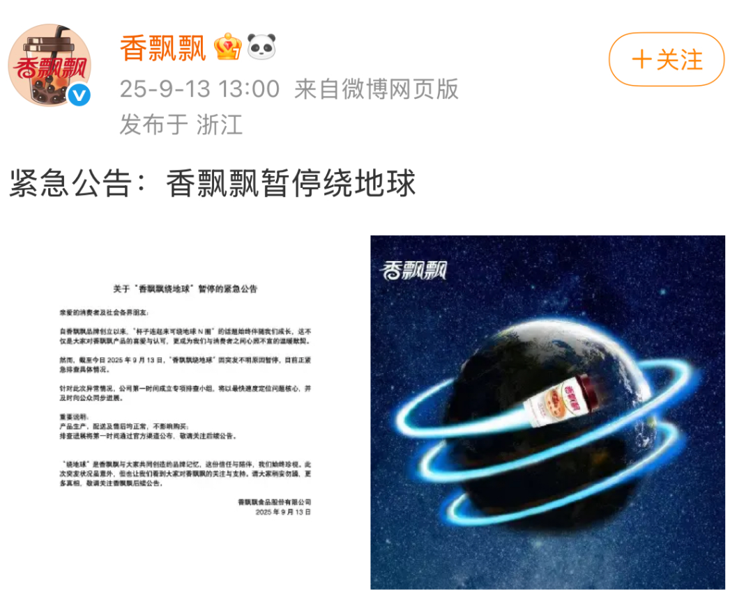9月,香飄飄做的“暫停繞地球”預熱活動|圖源:微博