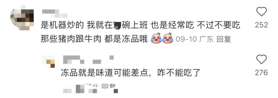 圍繞其他外賣的問題是:“它是不是預制菜?”而圍繞蓋碼飯的問題則變成了:“機器人炒的菜,算不算預制菜?”