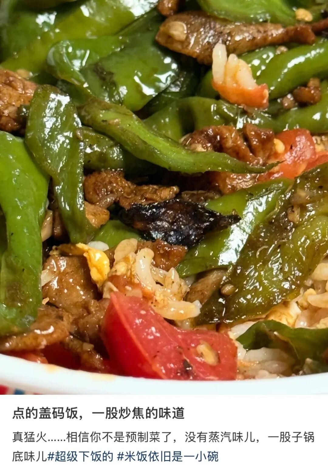 而且作為窮飽飯,大家對蓋碼飯的寬容度也很高,“都這個價了,就算是預制菜我也認了,結果一口下去竟吃出了鍋底灰,有一種中頭獎的感覺,那種久違的感動,讓你想起地鍋風味?!?/p>