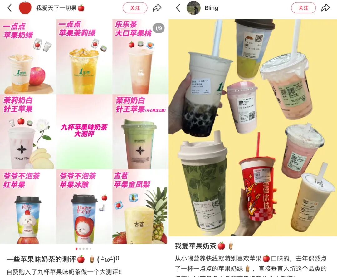 一點點選的是山東紅富士,古茗用的是四川大涼山丑蘋果,瑞幸用的是阿克蘇蘋果。