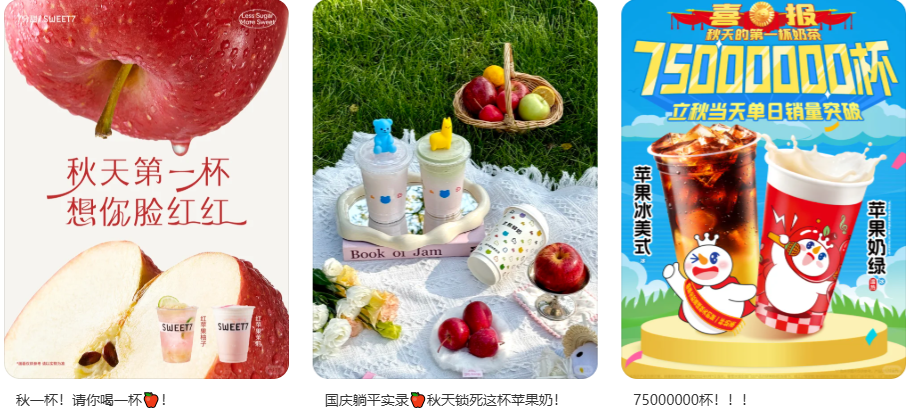 秋天的第一杯奶茶營銷鋪遍全網,不少品牌都選擇蹭蘋果熱度,并且效果還不賴。