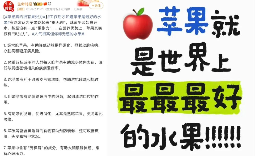 市場部用起來諧音梗發狠了,品嘗新“蘋”友、遇到“蘋”然心動、一顆“蘋”常心......對蘋果的倚重程度像是此前從未有過嫌隙。