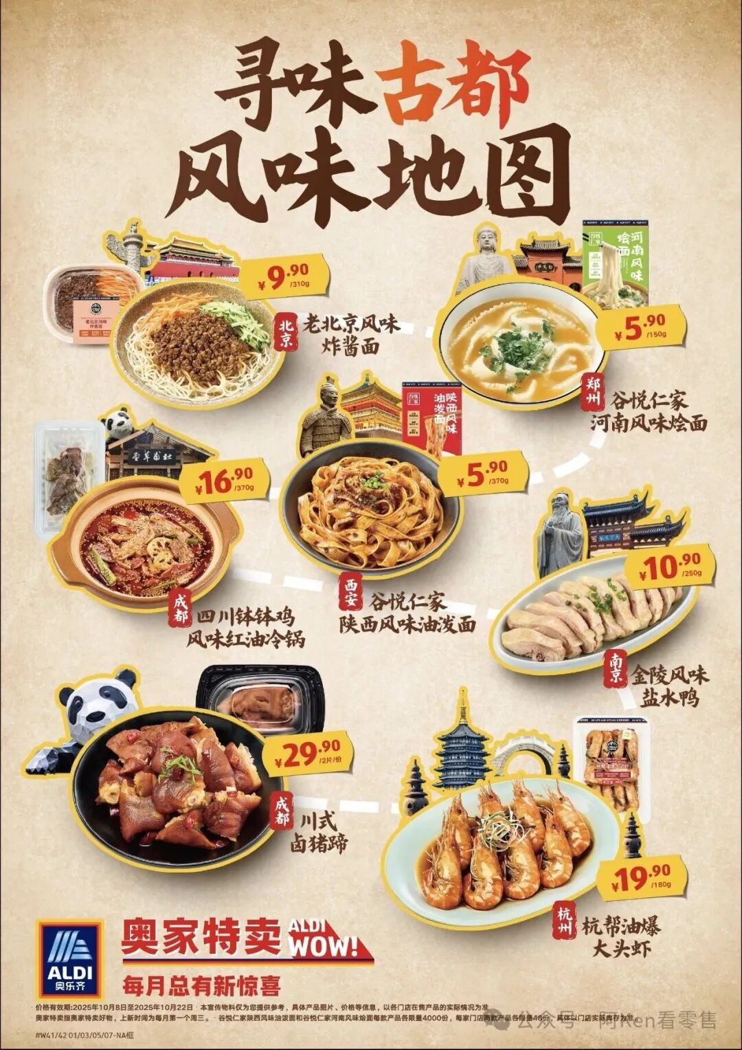 奧家特賣新的海報(每月第一個周三上新),這次的活動是“尋味古都風味地圖”;海報推廣了七個古都的口味,單價可以從5.9 到29.9,物價還真的是非常親民的。