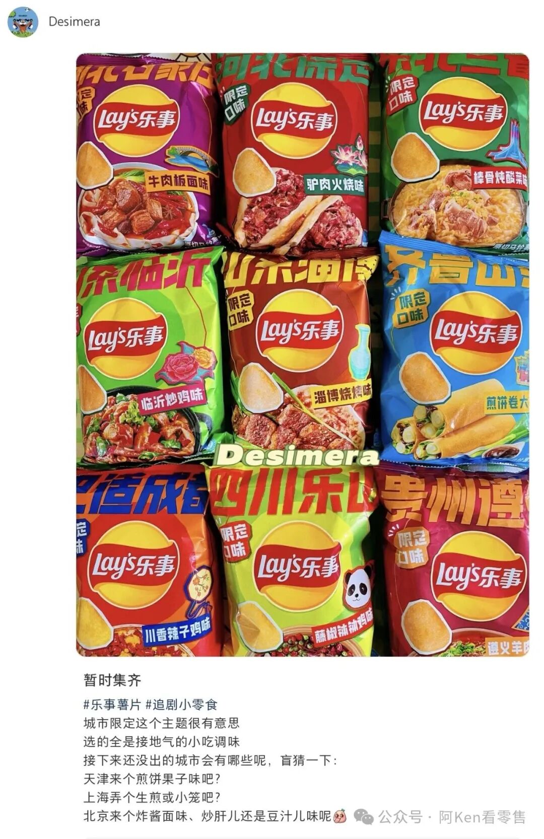 回到主題,話說城市的推廣我認為會是快消的一個大方向。地域口味 + 地域包裝 + 地域文化。譬如樂事薯片你在全國能吃到一樣的原味薯片,但薯片還可以打開地域限定口味,給大家獵奇、收集、分享、黑紅榜等討論。