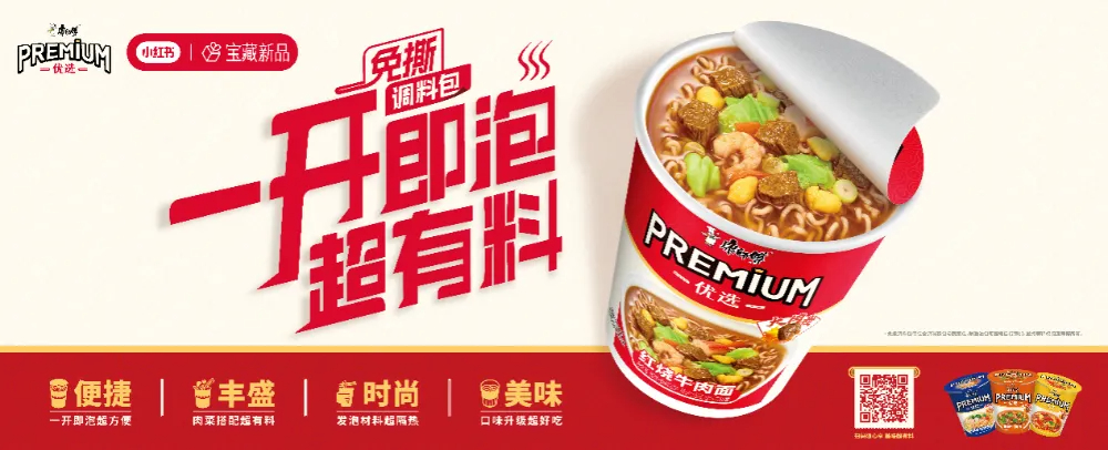 主打 “一開即泡 超有料” 的PREMIUM優選杯面,以豐富配料與便捷體驗,革新即時用餐場景。