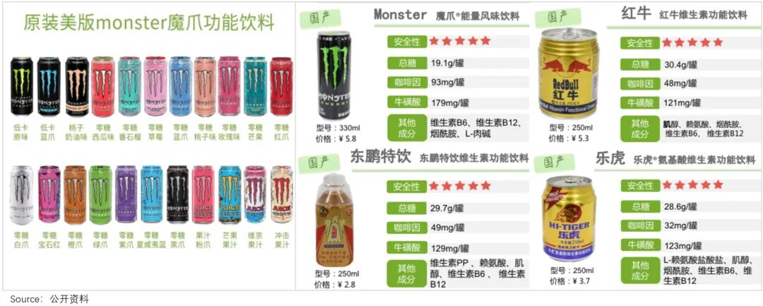 比起齁甜的紅牛們,魔爪含糖量也更低,咖啡因和?;撬岷繀s更高——這鑄就了其健康、高端的品牌形象,與追求個性、瘦身的年輕人不謀而合。